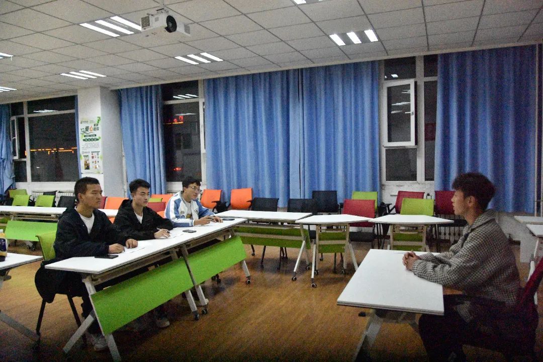 面试现场,各部门负责人有序引导面试者排队候场并按签到顺序依次进行面试。各环节分工明确、有条不紊。面试过程中同学们自信地做着自我介绍和才艺展示。面对评委们的“刁难”,也毫不露怯,凭借以往的经验和知识储备,从容不迫地给出了自己的见解,展现出了属于他们的青春风采。