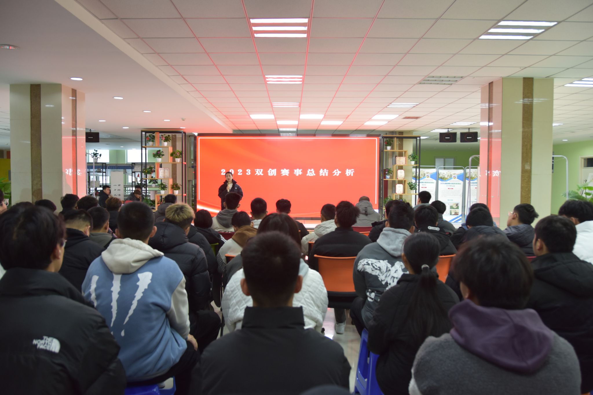 2024年1月5日下午,院团委在苔米匠-综合双创实践基地召开学院2023年创新创业竞赛总结交流会。与会人员包括获奖教师代表、获奖学生代表、创新创业相关社团学生、各班学生代表等。
